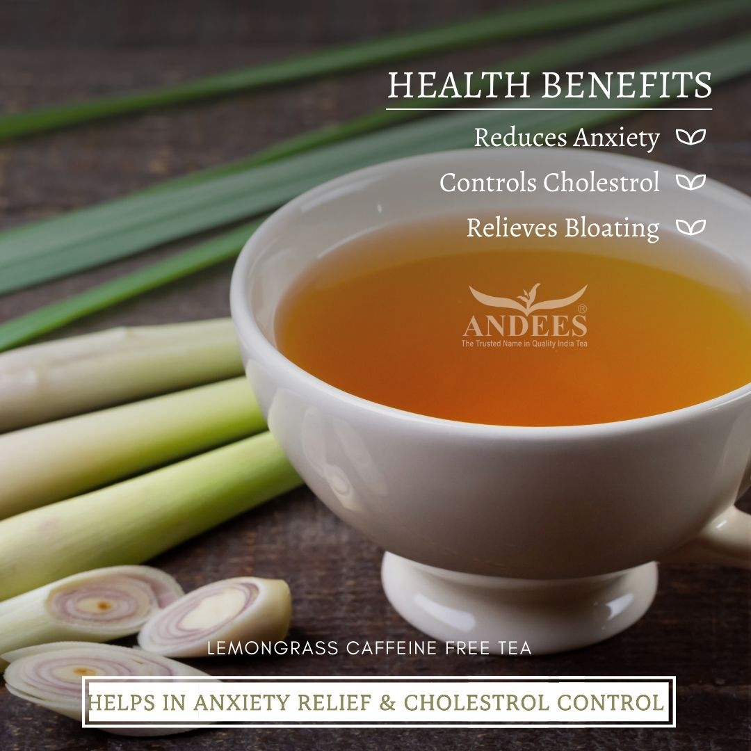 Pure Lemongrass Tea is caffeine-free and known for its ability to ease tension, reduce stress, and promote a sense of calm, making it a great choice for evening relaxation.Answer