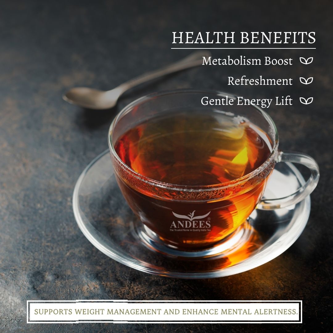 Black Tea: High in antioxidants that support heart health, improve digestion, and provide an energy boost.