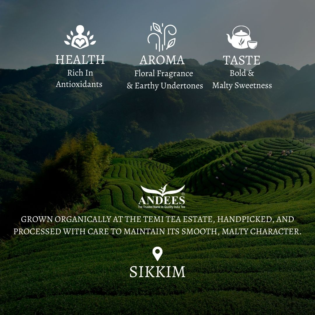 - Speciality: Sikkim Temi is one of India’s finest organic teas, known for its smoothness and unique malty sweetness.